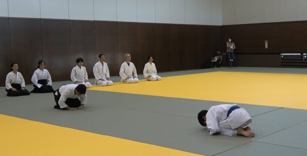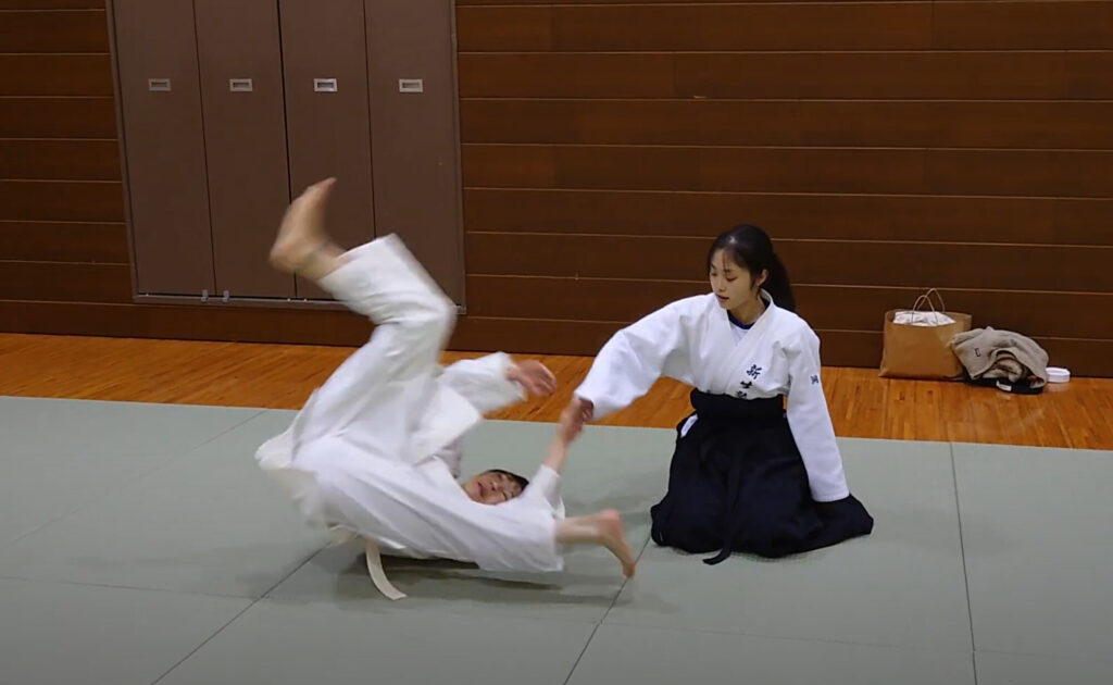 村崎さんは全身を整えてから四方切りや座技での後受け身の稽古をしました。陽菜ちゃんは座技 正面打一教~四教、立ち技 肩取打ち小手返しを、有馬さんは陽菜ちゃんの...